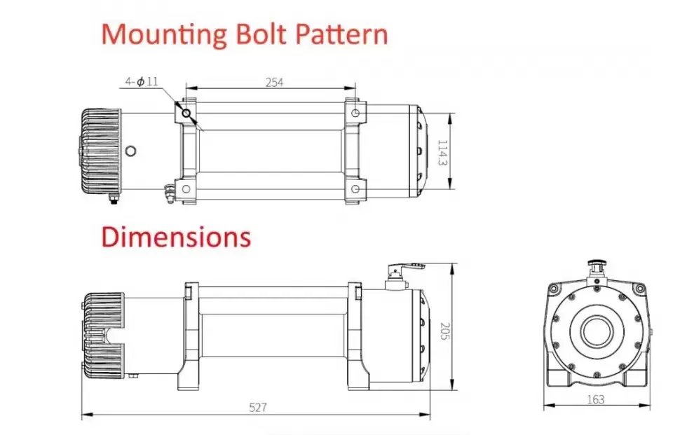 Winde 12 V, 13.000 lbs, 5897 kg, graue Farbe für 4X4 Overland.