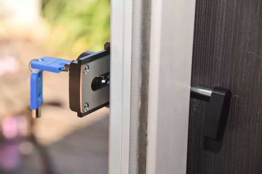 Schloss für die Haustür, von hoher Qualität, gebaut aus bearbeitetem und eloxiertem Aluminium in SCHWARZER FARBE mit Stahlschließzylinder, Schiebeschließsystem, es kann auch ohne Schlüssel vom Inneren des Hauses geschlossen werden und bietet zusätzliche Sicherheit und Öffnung ohne im Notfall einen Schlüssel von innen zu verwenden.