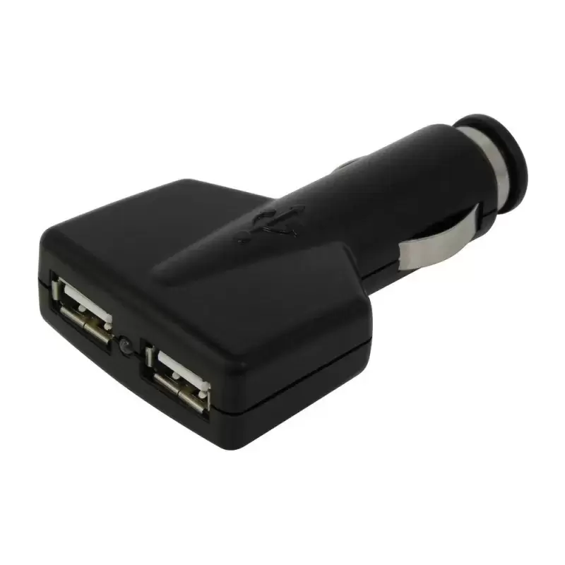 Zigarettenanzünderbuchse mit zwei USB-Ausgängen zum Aufladen mobiler Geräte.